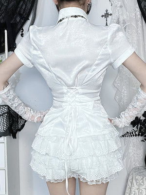 - Wash gently and avoid rubbing or twisting to protect the fabric, lace, and glitter prints./生地、レース、グリッタープリントを保護するため、優しく洗い、こすったり捻ったりしないでください。
