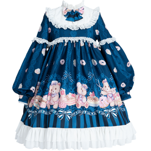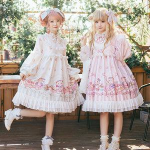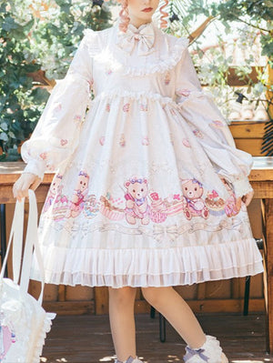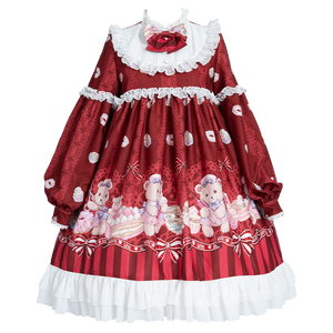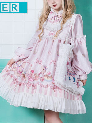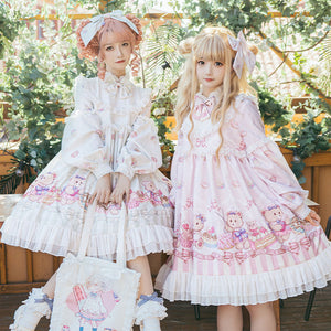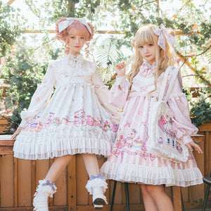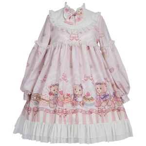 Lolita Cute Nurse Bear Print OP Dress LS1016