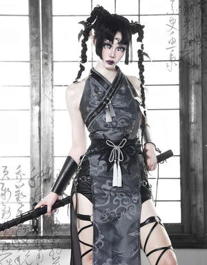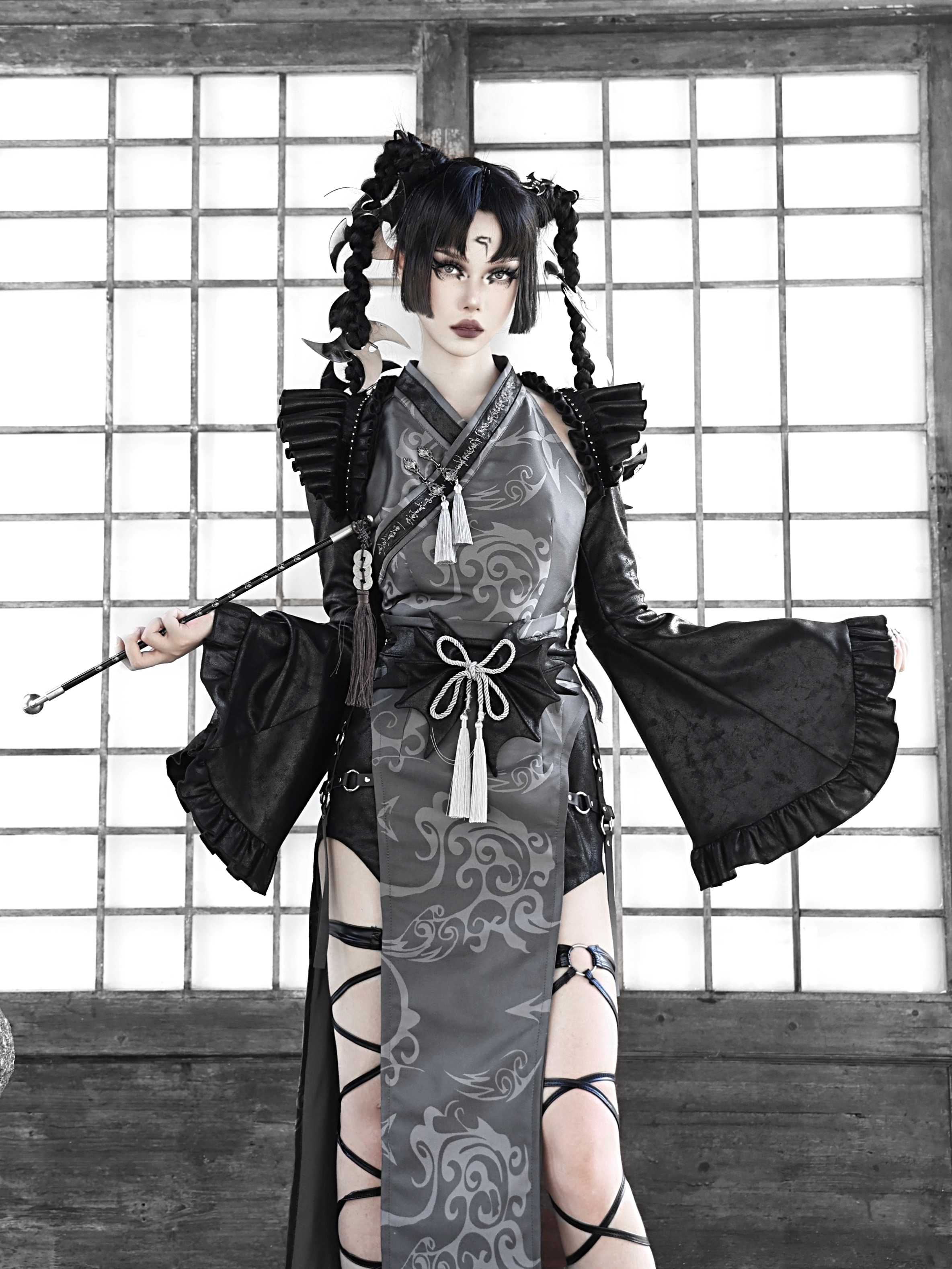 • Dark & Elegant Aesthetic: Inspired by the "Demon Blade Princess" character, the dress features a sophisticated blend of gray and black, creating a mysterious and elegant ambiance reminiscent of blood-stained swords.