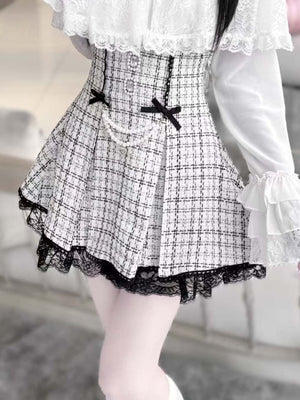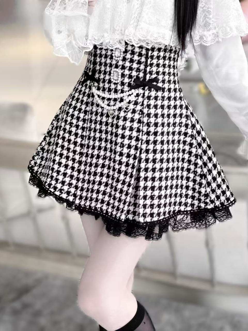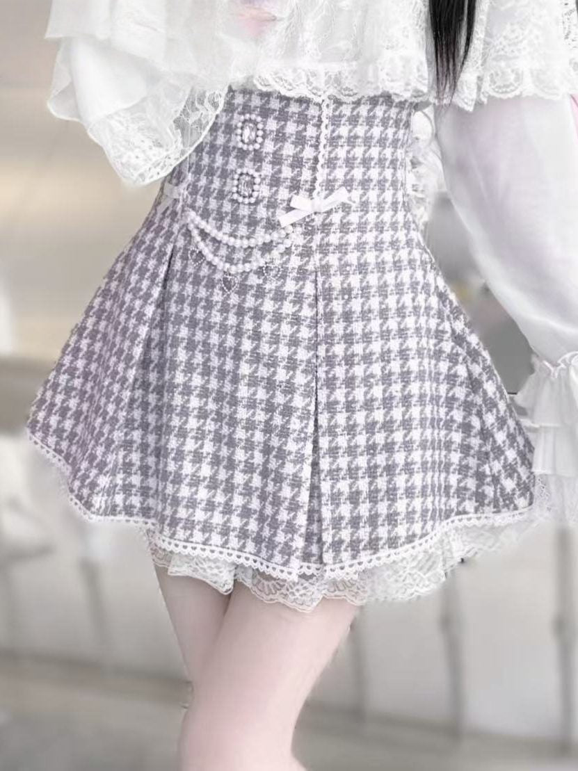Lolita Pearl Chain Tweed Lace Skirt LR1003
