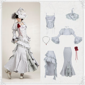 Set=Vest+Detachable Collar+Bodice+Asymmetrical Skirt