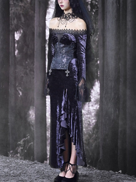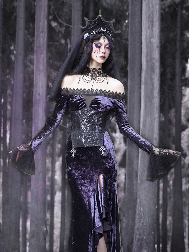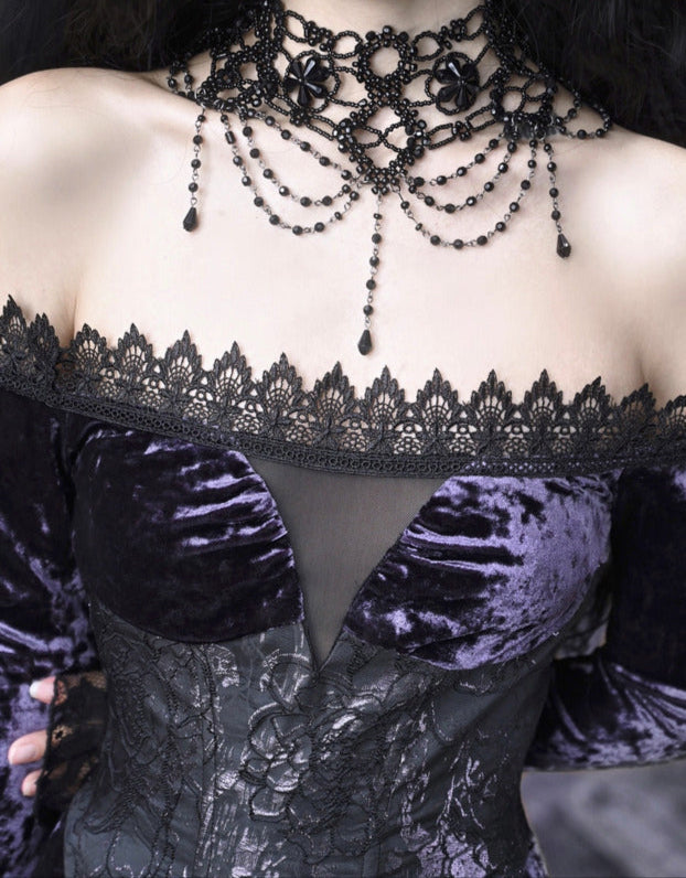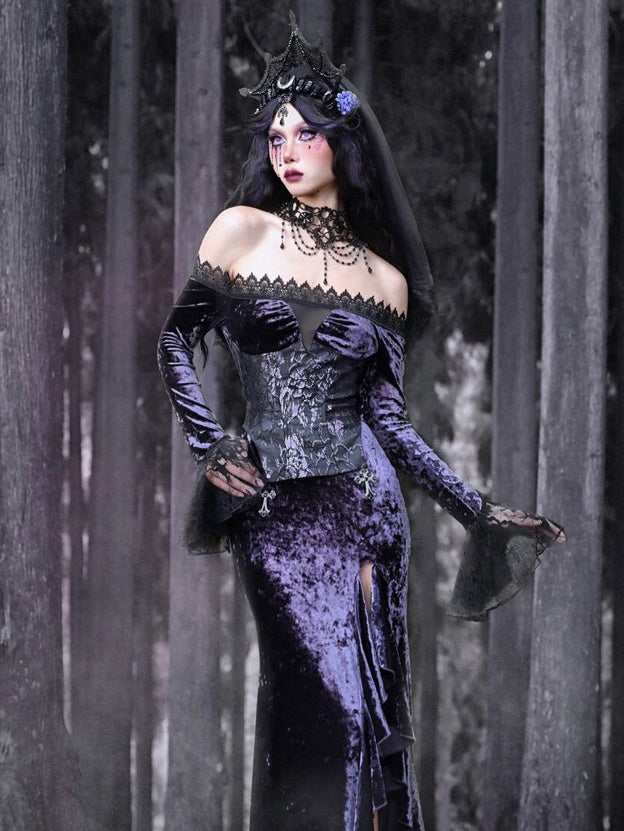 - Elegant Silhouette: Features a luxurious dark purple hue, an off-the-shoulder neckline, and metal fishbone support at the waist to create a perfectly sculpted, feminine figure.