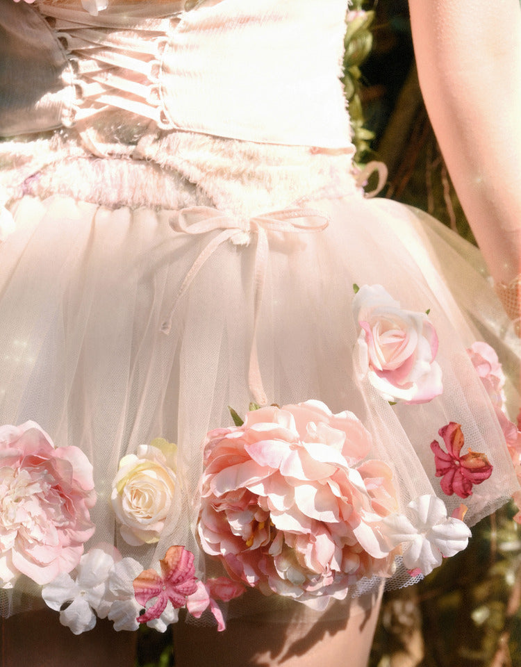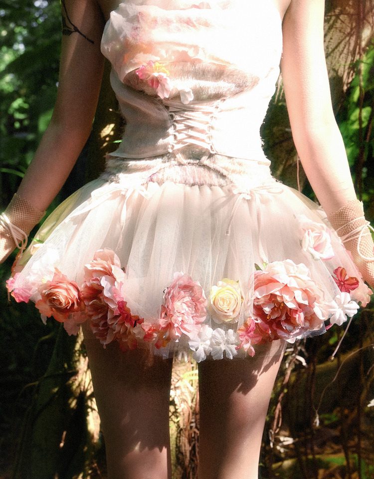 - Playful Hemline: The pointed hemline is adorned with four delicate ribbon ties, adding a youthful and whimsical touch.