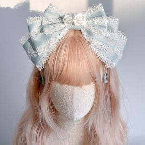 Lolita Sweet Ice Blue Lace Bow Bonnet/KC/Sleeves LE6001