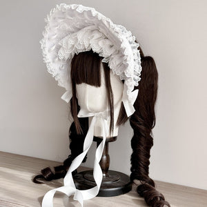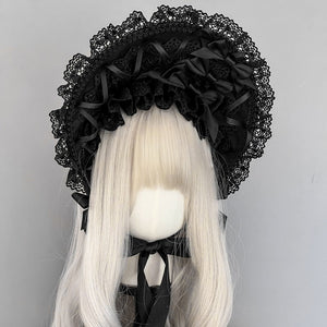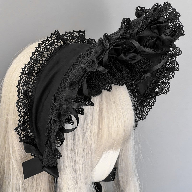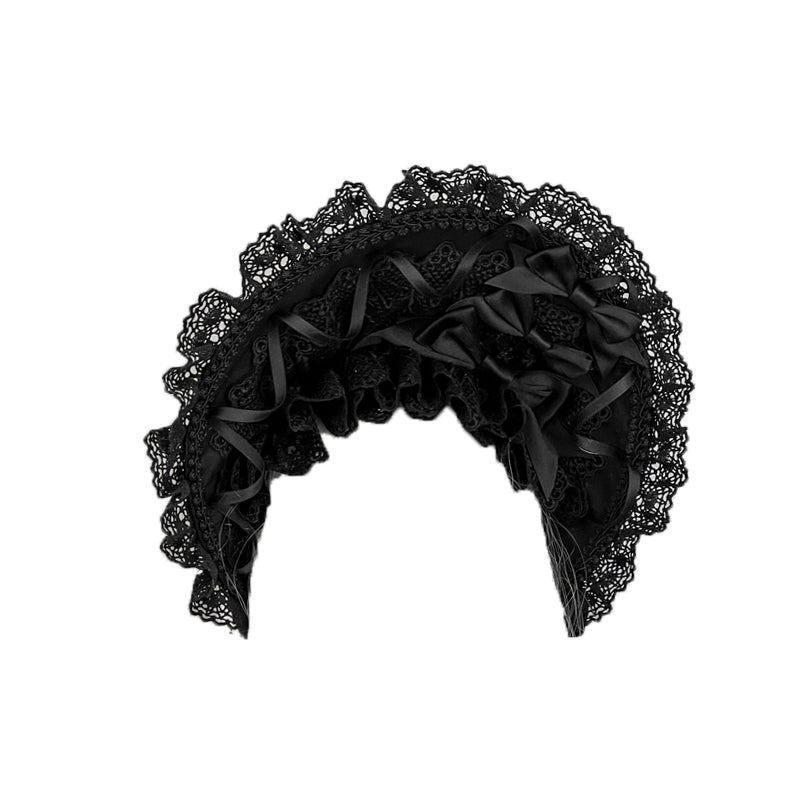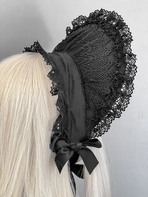 Lolita Gothic Black Handmade Lace Bonnet (5 Colors) LE6004
