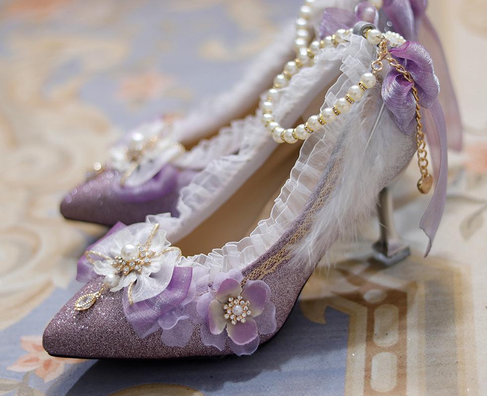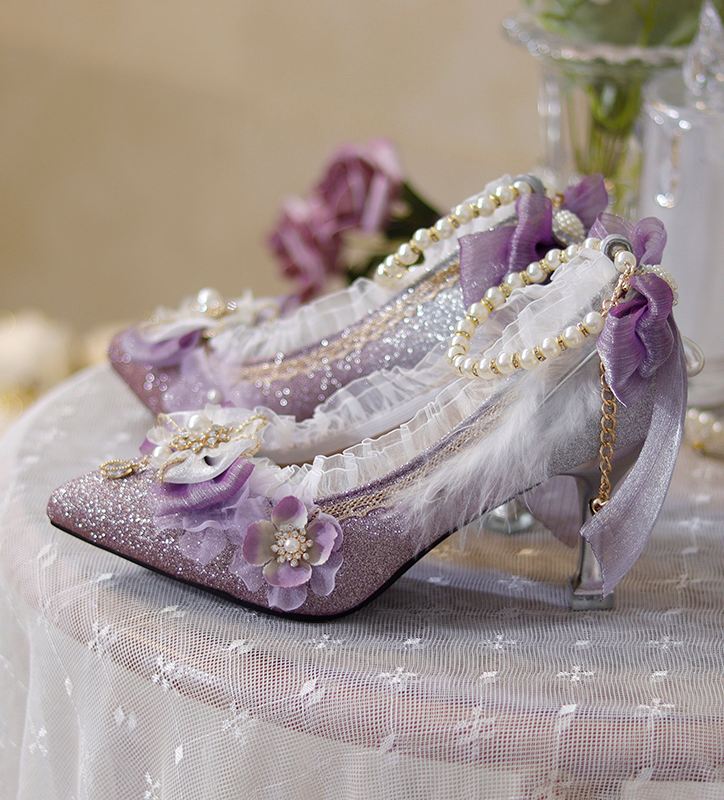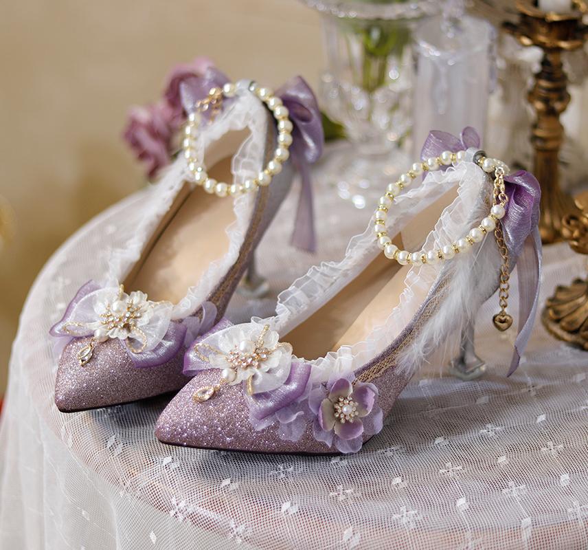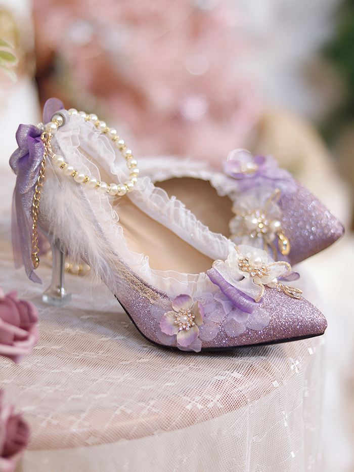 Lolita Pointed Toe Glitter Purple Middle Heels LSS1005