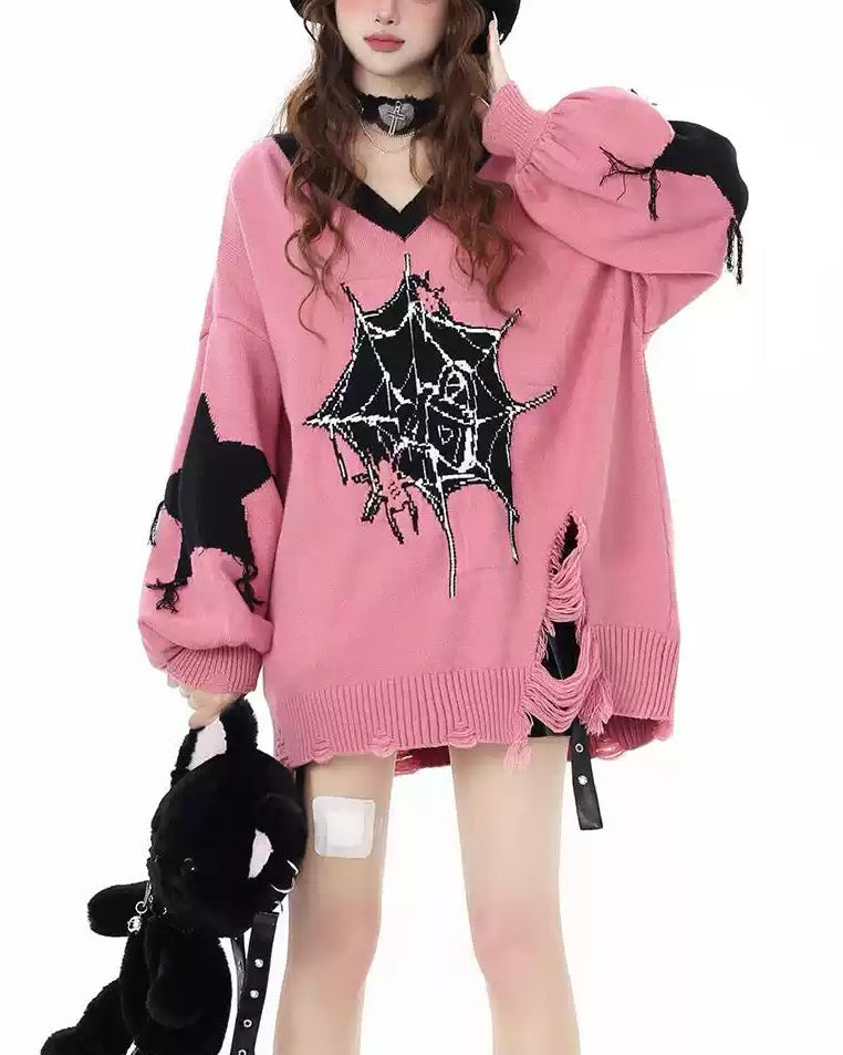 Y2K Alternative V-Neck Knit Sweater LE1027