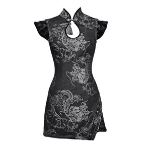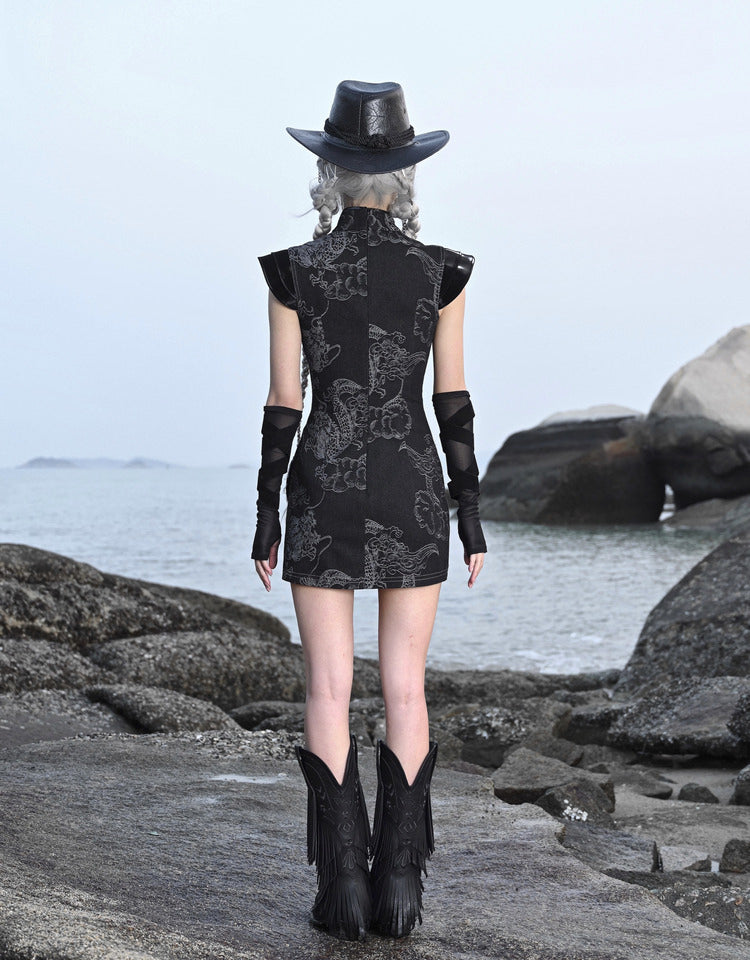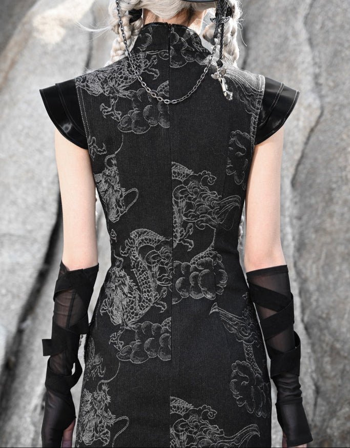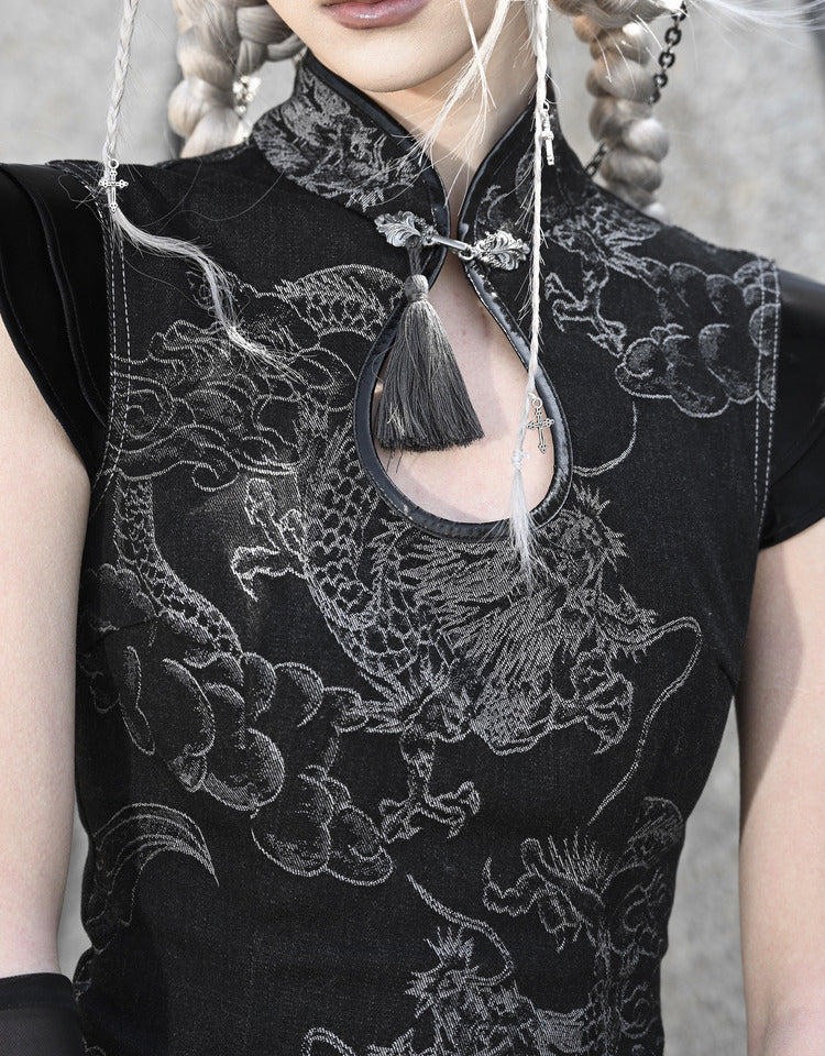 - Refined Details: Blends a classic Chinese stand collar to enhance the neck line with a teardrop-shaped cutout at the neckline, accented with shimmering patent leather piping for an elegant curve.