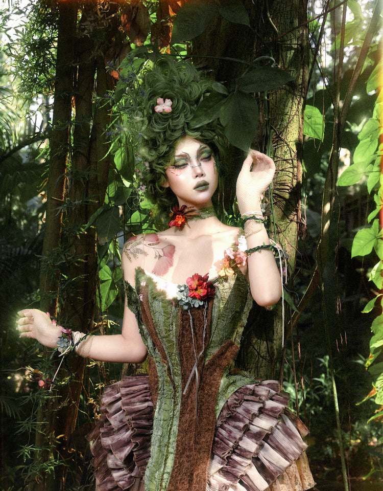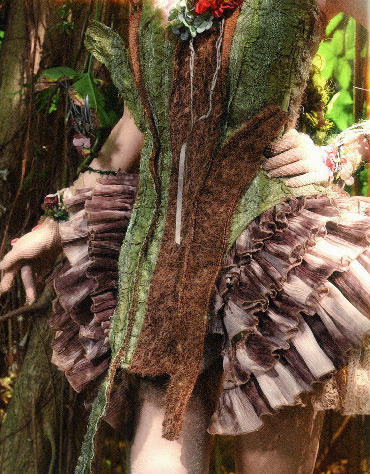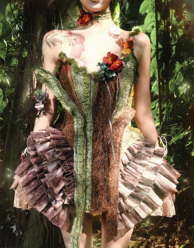 Neckline Design: The fur grass wrapped around the neckline is attached with the humid and hot moisture of the rainforest.