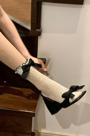 Pearl Bow Girly Mesh Mid-Calf Socks