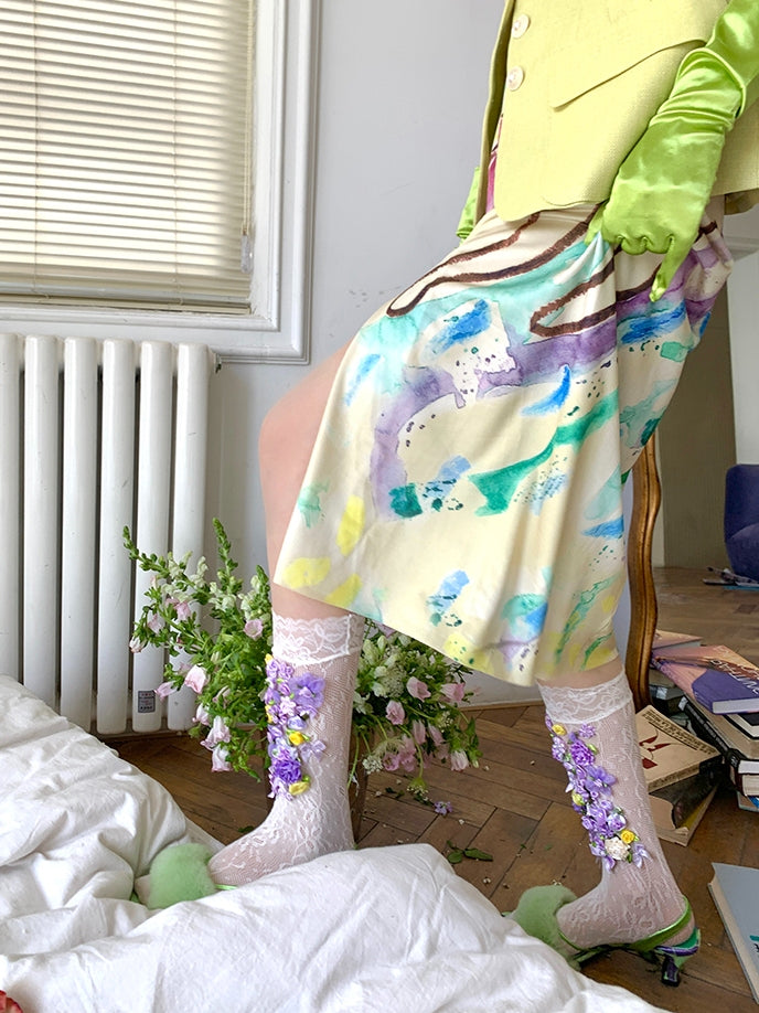 Dreamy Purple Fairy Flower French Vintage Bow Pile SocksLE9034