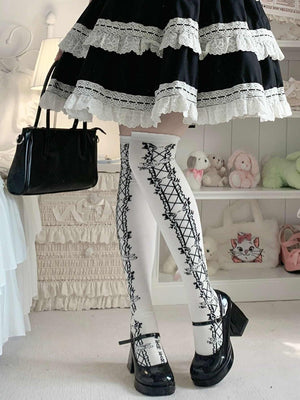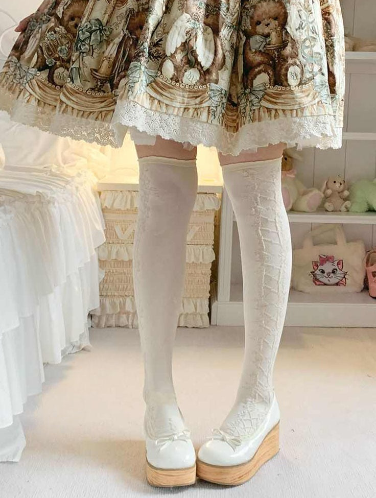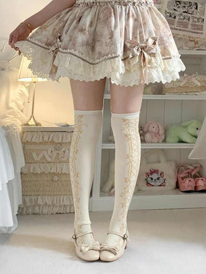 Lolita Sweet Bow Print Mid-Calf Warm Socks LE9009