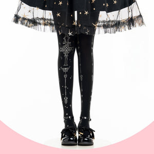Lolita Gothic Thorn Cross Print Tights LE9017
