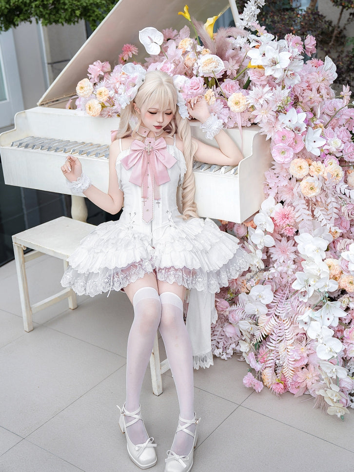 セット=キャミソールワンピース+ショーツ+ネックアクセサリー+リボン