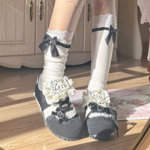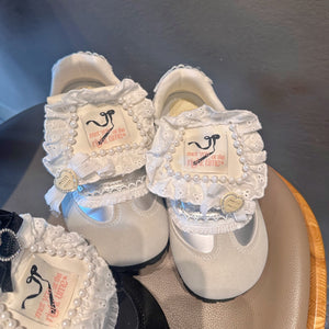 Step into a world of sweet elegance with these adorable lace-trimmed flats. Perfect for adding a whimsical touch to any outfit, these shoes combine charming details with comfortable wear.
