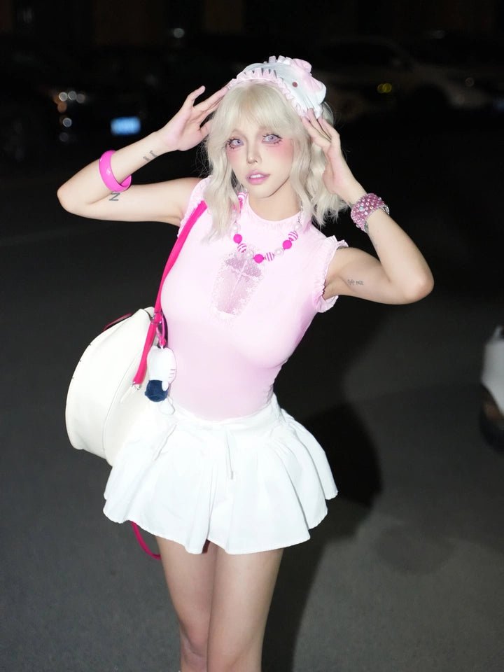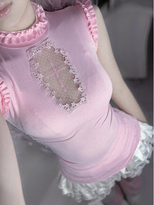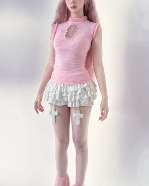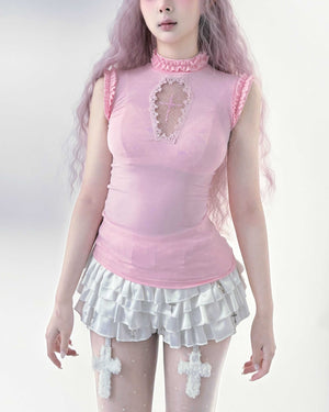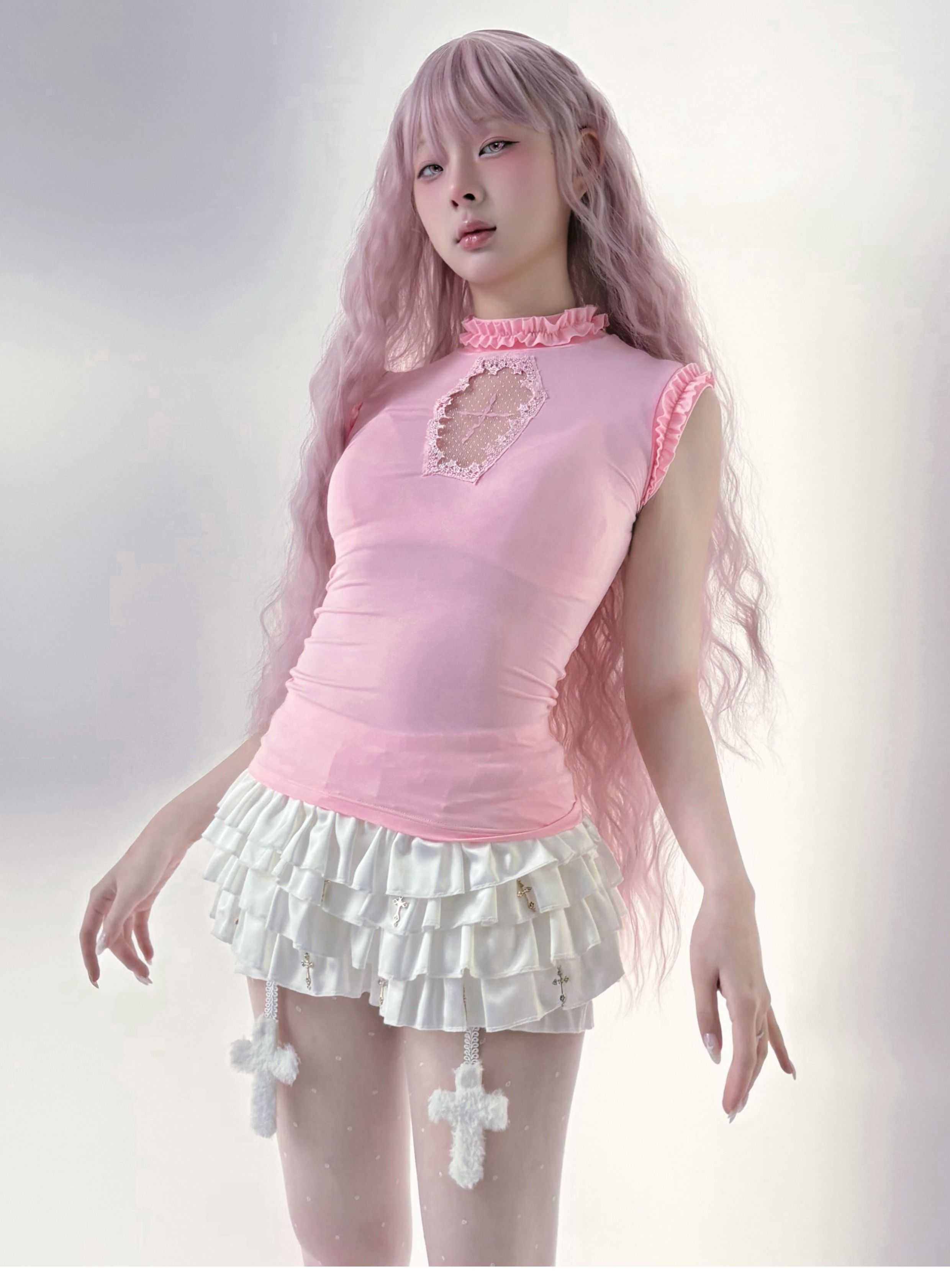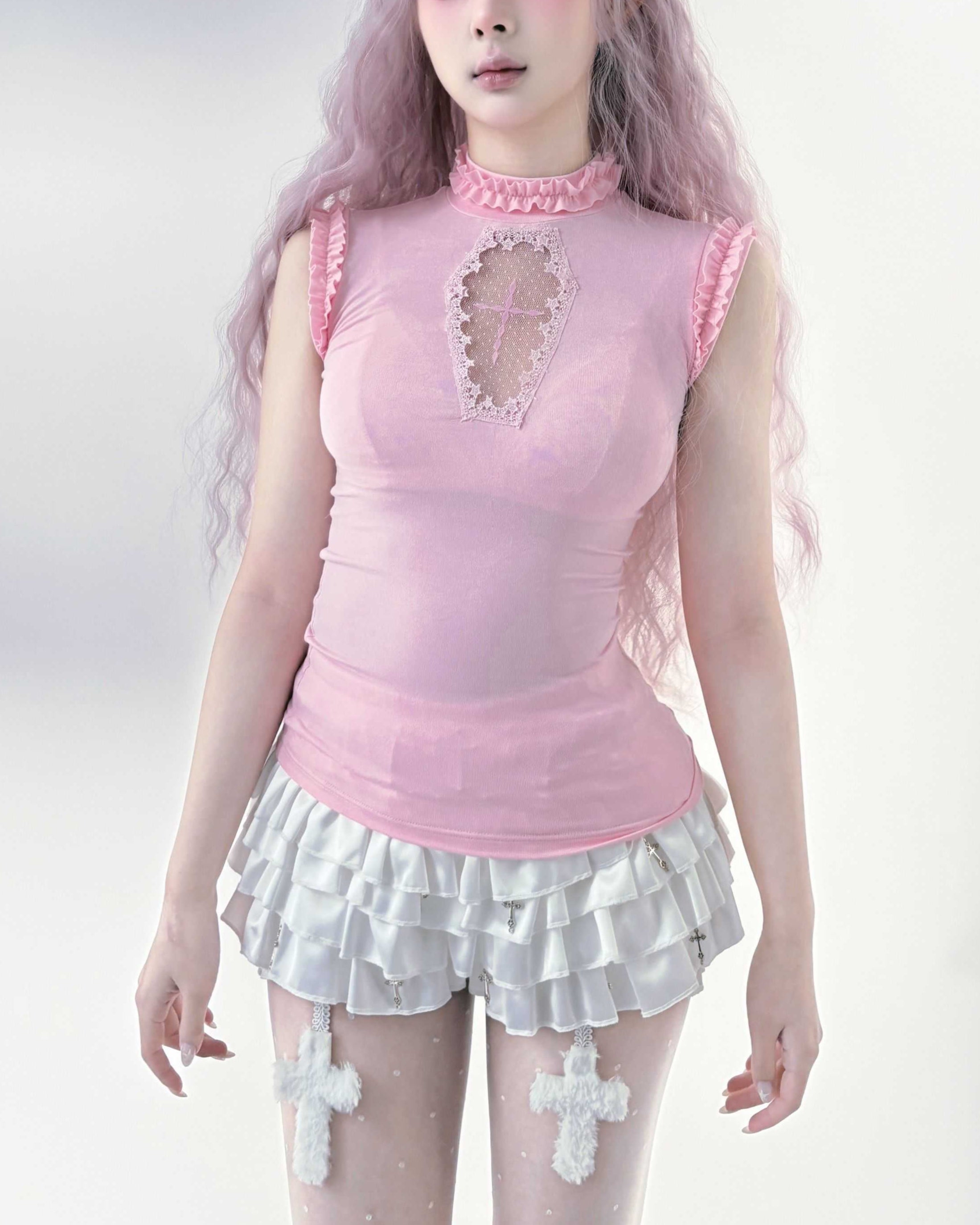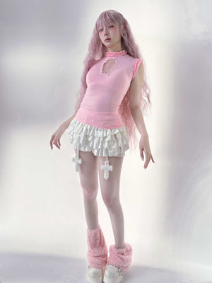 Lolita Gothic Cross Cut Out Tee & Corset Vest Set LE1037
