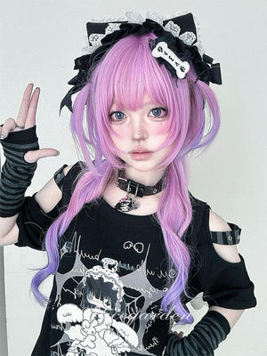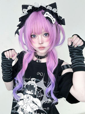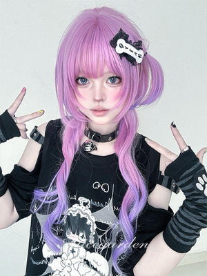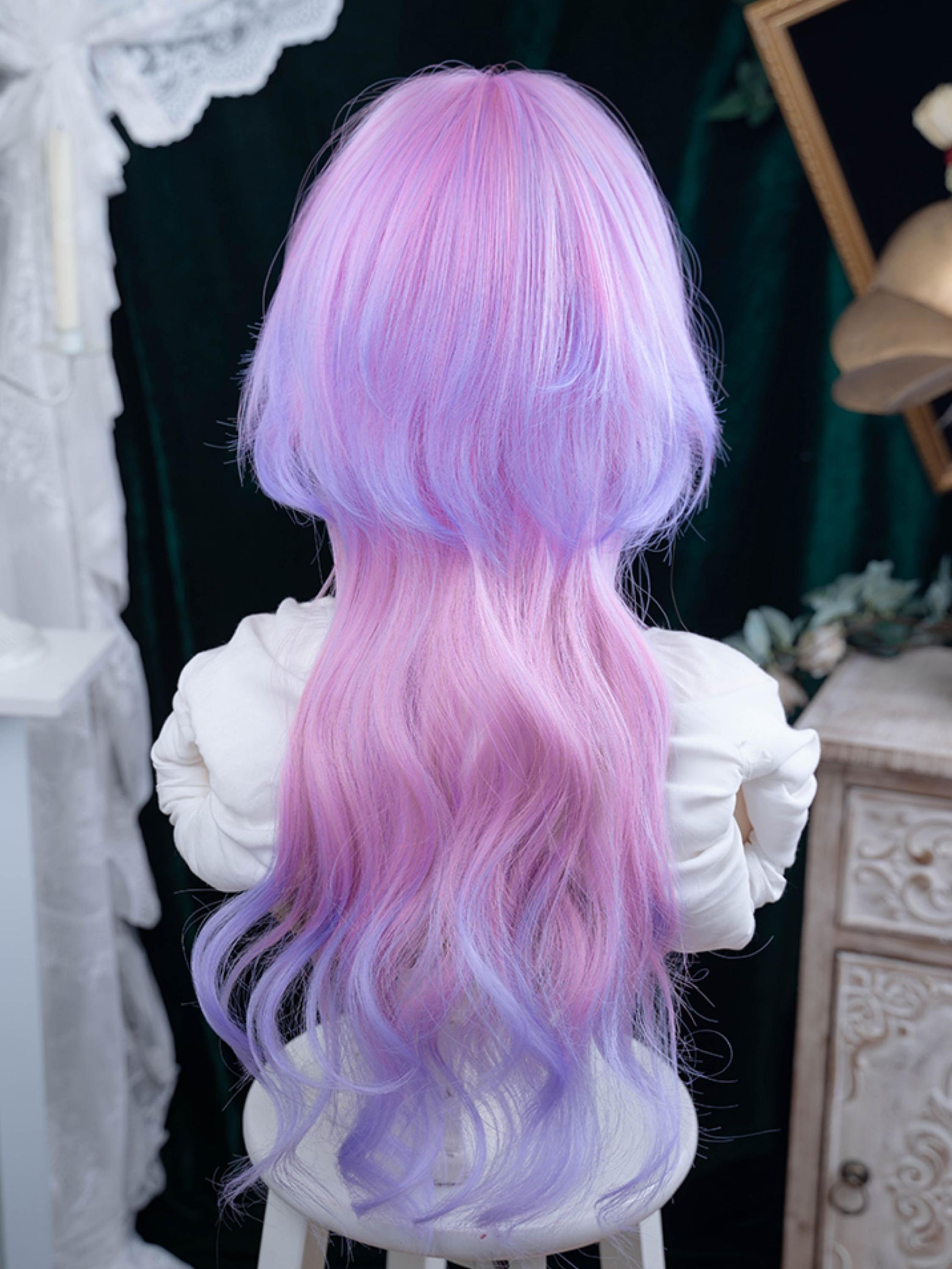 Make a dramatic statement with this long wavy jellyfish wig. The unique haircut combines a short, rounded top with long, flowing curls underneath, while the stunning ombré color transitions from a vibrant magenta to a deep purple. This wig is a fashion-forward choice, perfect for turning heads with a bold and edgy look.