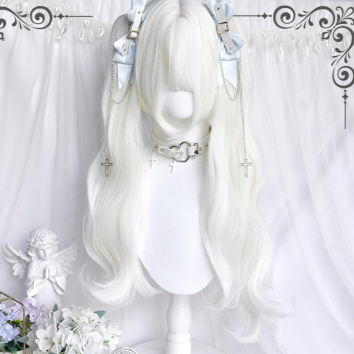 Pure White Twin Tails Long Wavy kawaii Wig LE7027