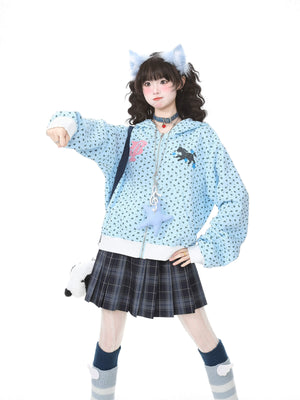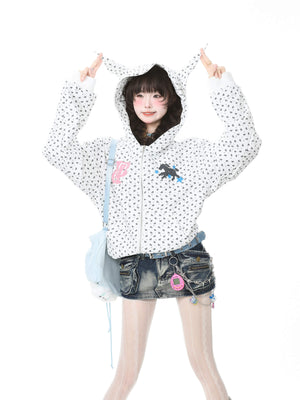 Star Print Hooded Sweatshirt Short Top