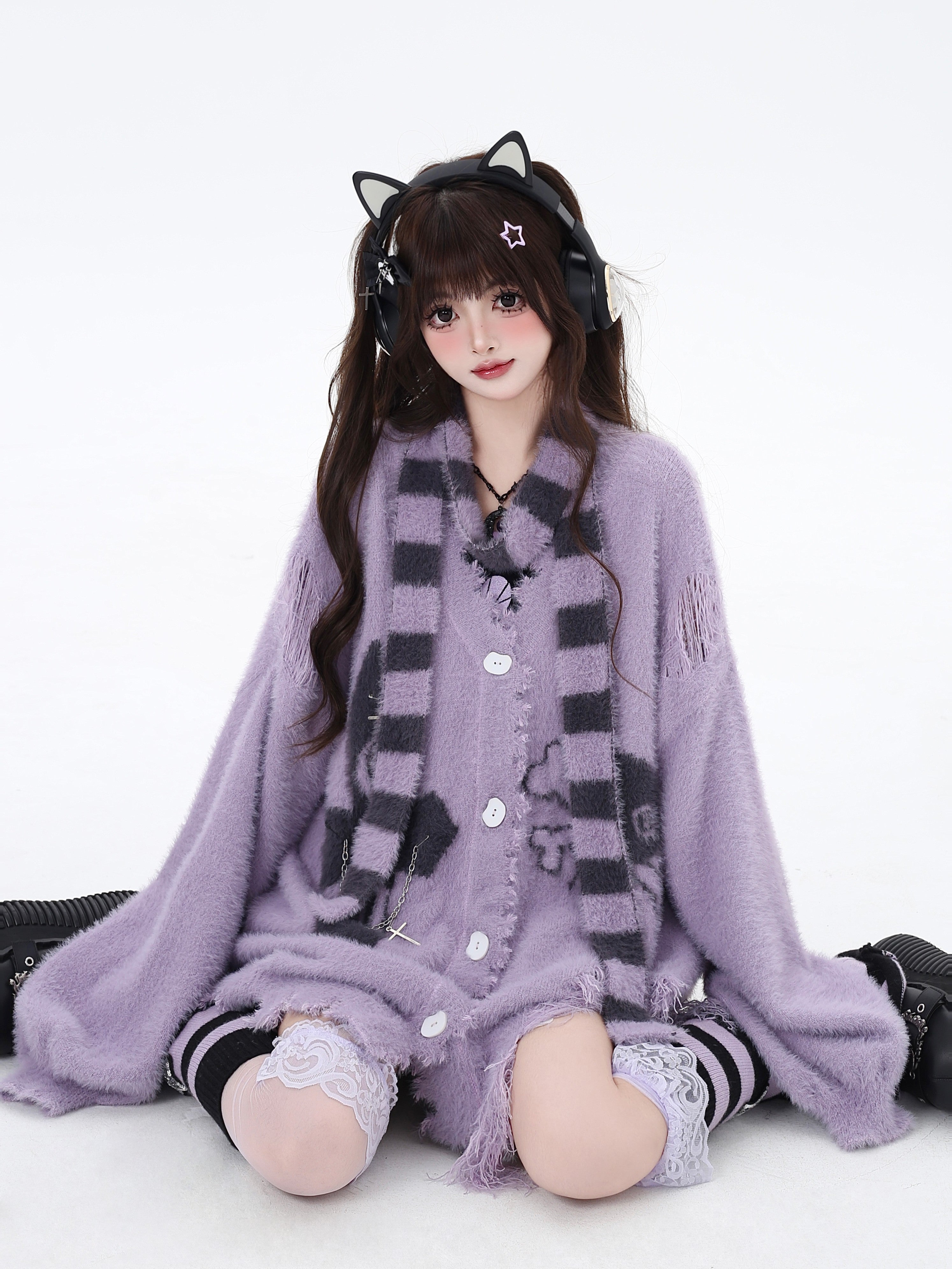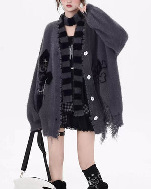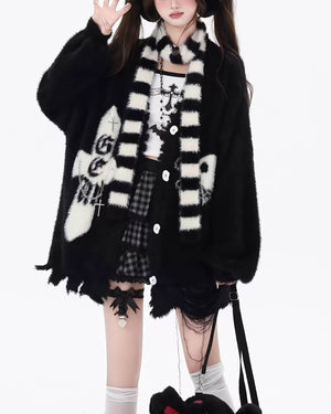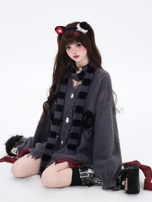 Soft Alternative Y2K Faux Fur Knit Cardigan Sweater LE1028