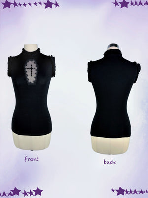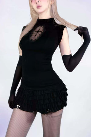 Dark Gothic Cross Top & Tiered Skirt Set