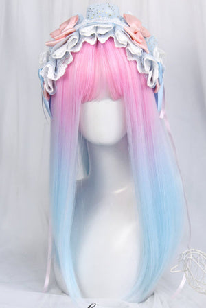 Long Straight Pink to Blue Mixed Color kawaii Wig