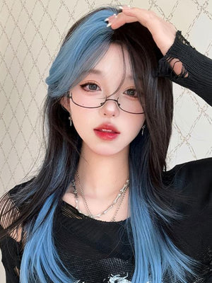 Long Straight Black to Blue Y2K Mixed Color Wig