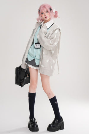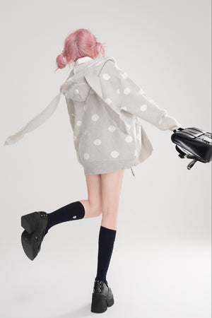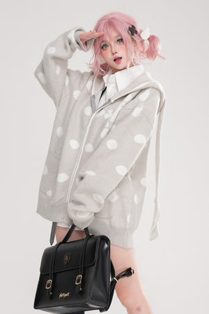 Kawaii Polka Dot Bunny Ear Hooded Sweater