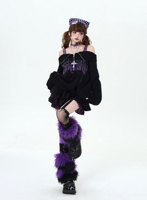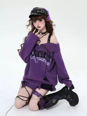 Y2K Black & Purple Off-Shoulder Sweater