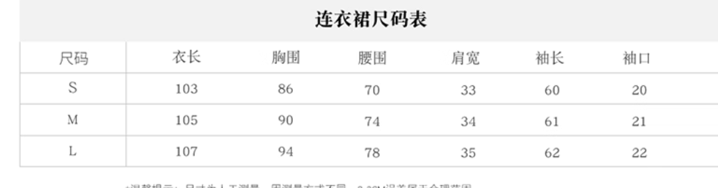 Size | Length (cm / in) | Bust (cm / in) | Waist (cm / in) | Sleeve (cm / in) | Shoulder (cm / in) | Cuff (cm / in) |