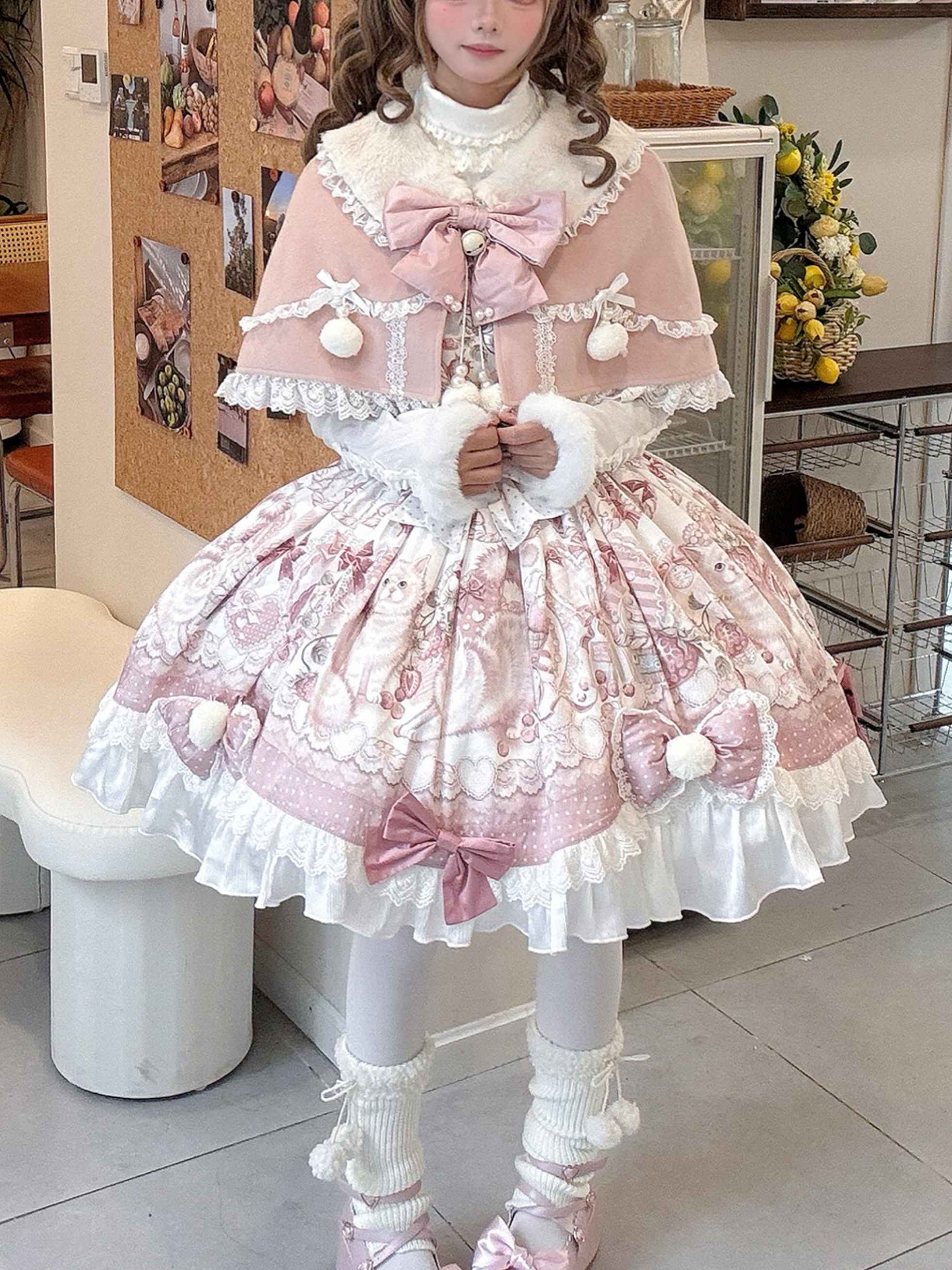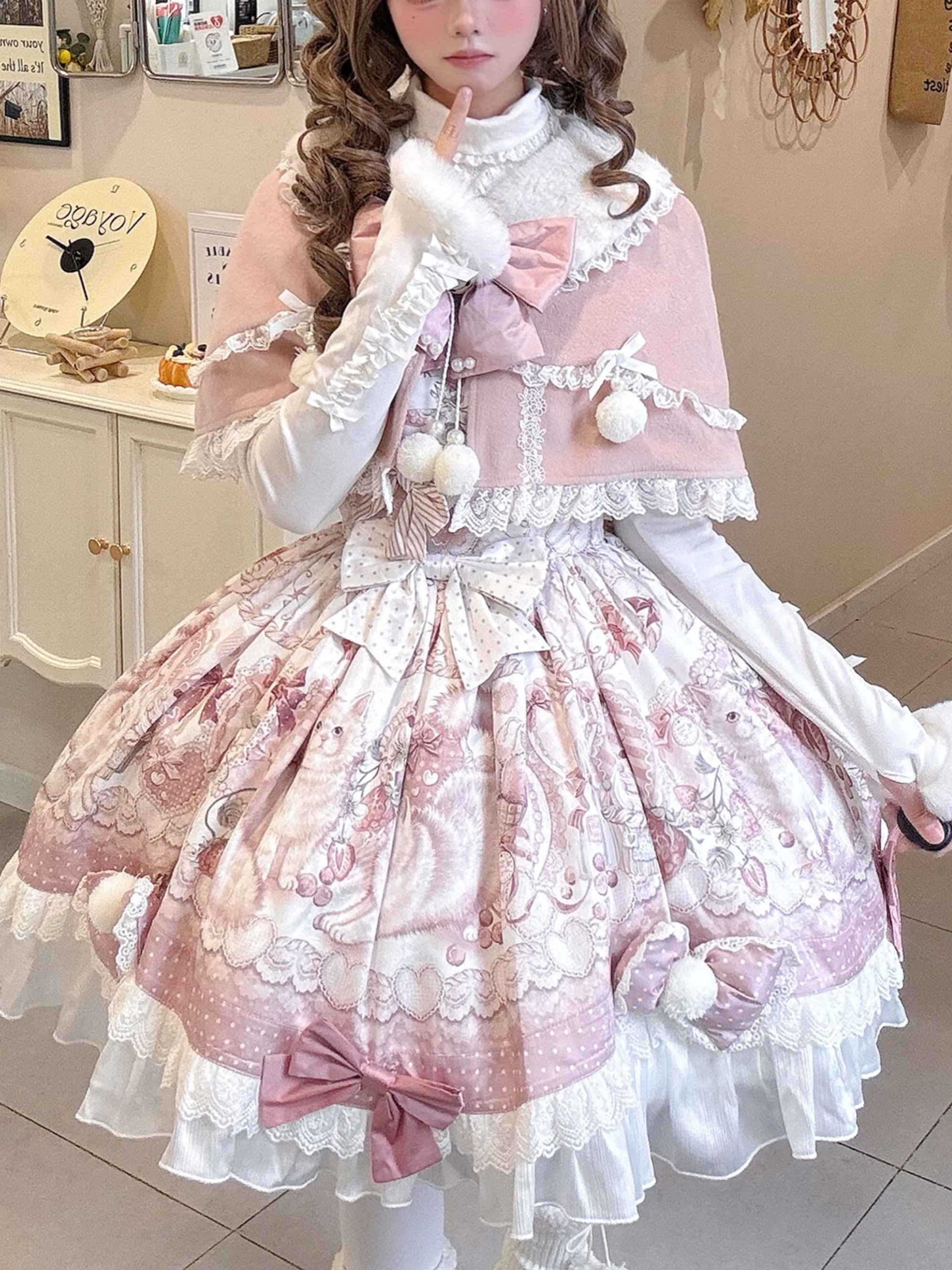Lolita Kawaii Cat Motif Plush JSK Cape Winter Set LSD0020