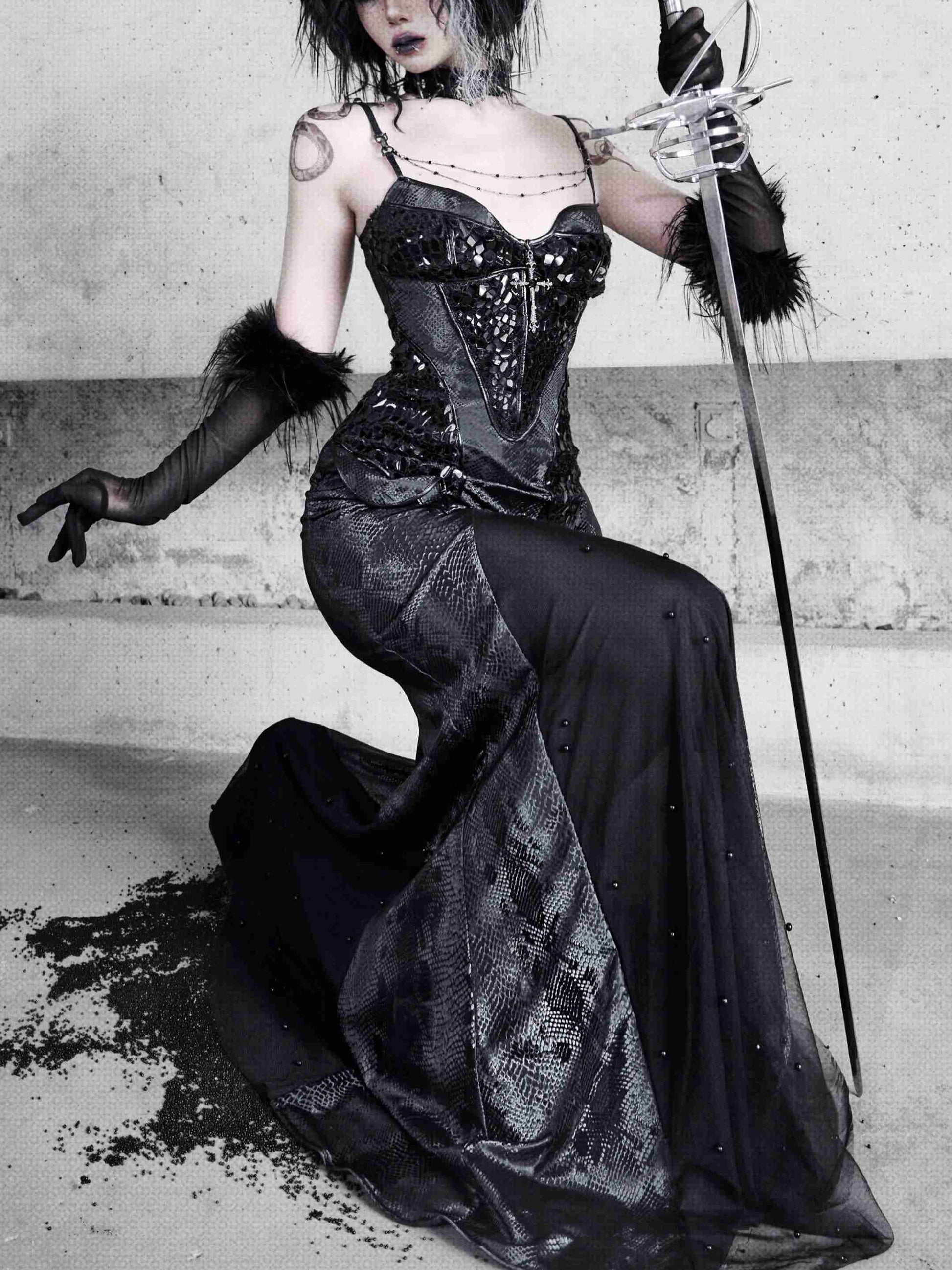 - Sleek, Wild Silhouette: The black elastic PU leather fabric hugs the body, suggesting the untamed ferocity of a black mamba. The surface features an optical serpentine texture that shimmers and shifts as you move.