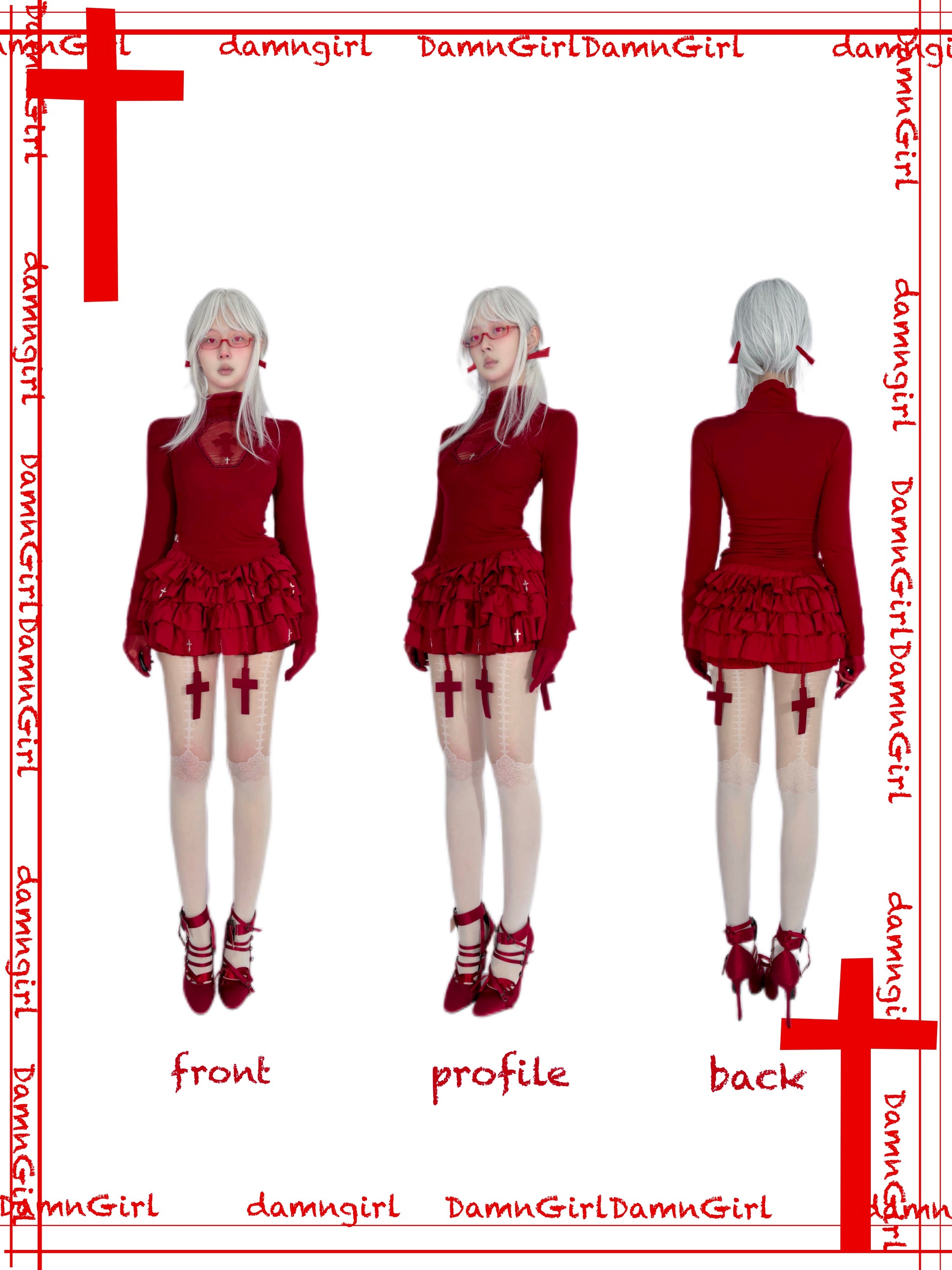Lolita Gothic Cross Motif Turtleneck Red Blouse LE1035