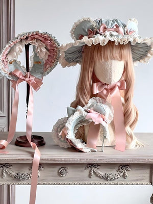 Lolita Kawaii Bear Pink & Green Hair Clip KC Bonnet