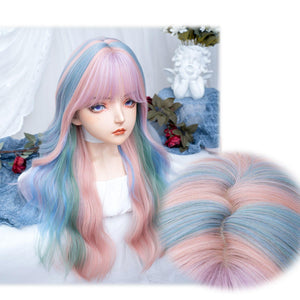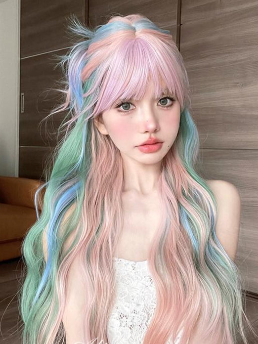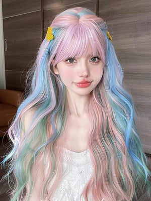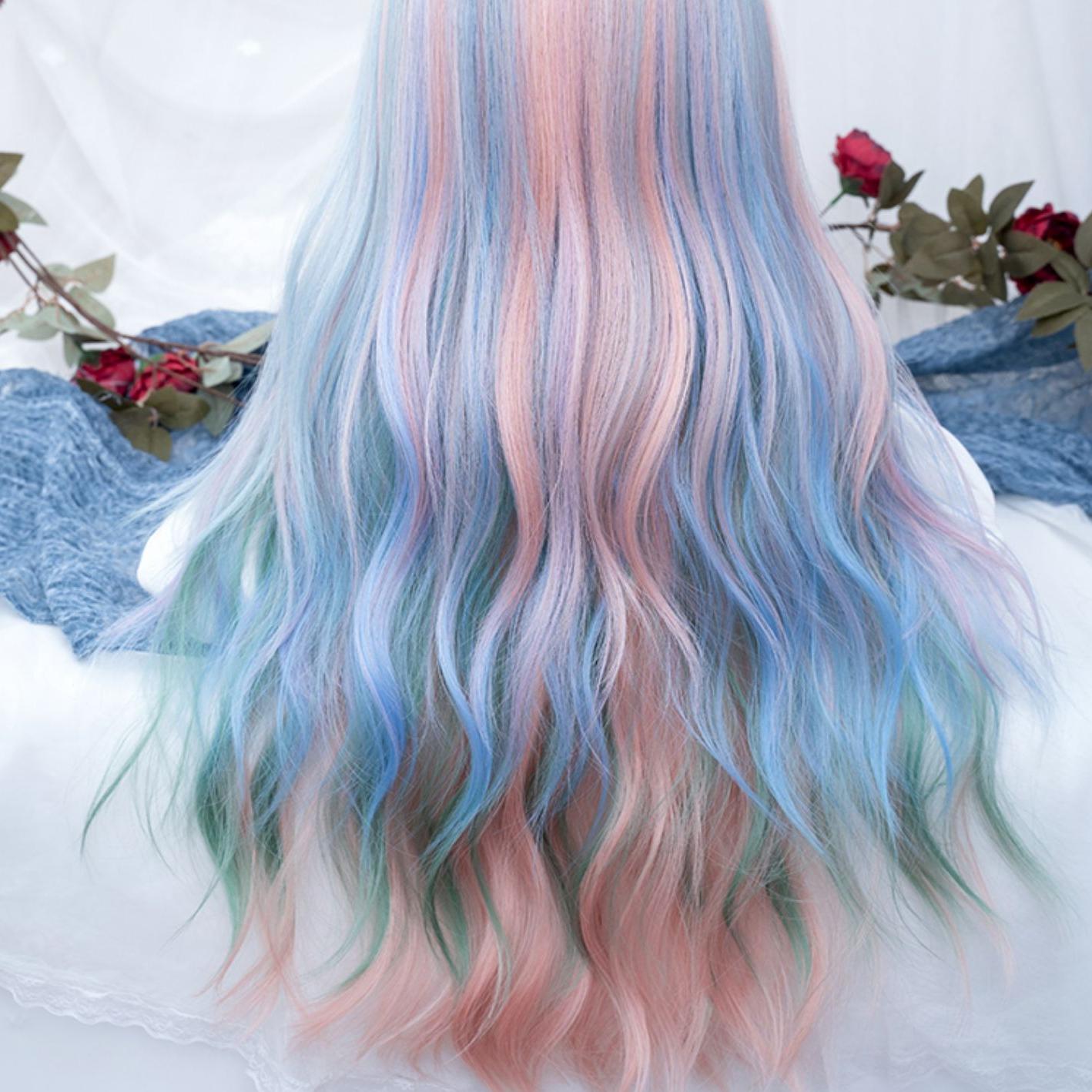 Unleash your inner vibrant spirit with this show-stopping long curly rainbow wig! Featuring a mesmerizing blend of pink, purple, blue, and green, this wig creates a stunning, multi-dimensional color effect. The soft, flowing curls add volume and movement, making it perfect for turning heads at festivals, cosplay events, or simply expressing your colorful personality.