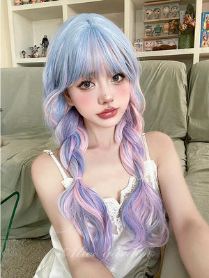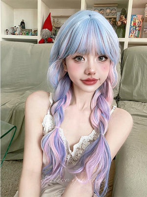 Long Wavy Pink & Blue & Purple Multi-Color Y2K Wig LE7004