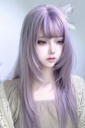 Длинный прямой парик с челкой, пепельно-фиолетового цвета, модель LE7017.
