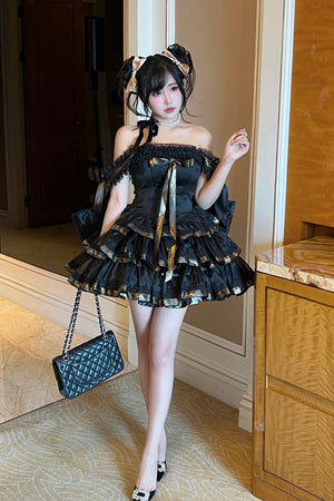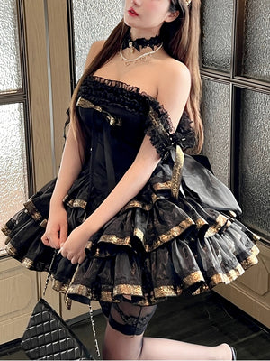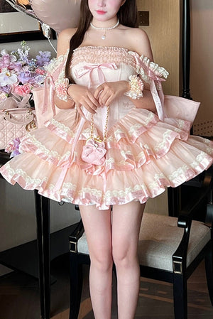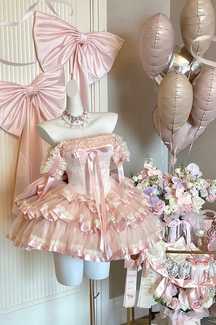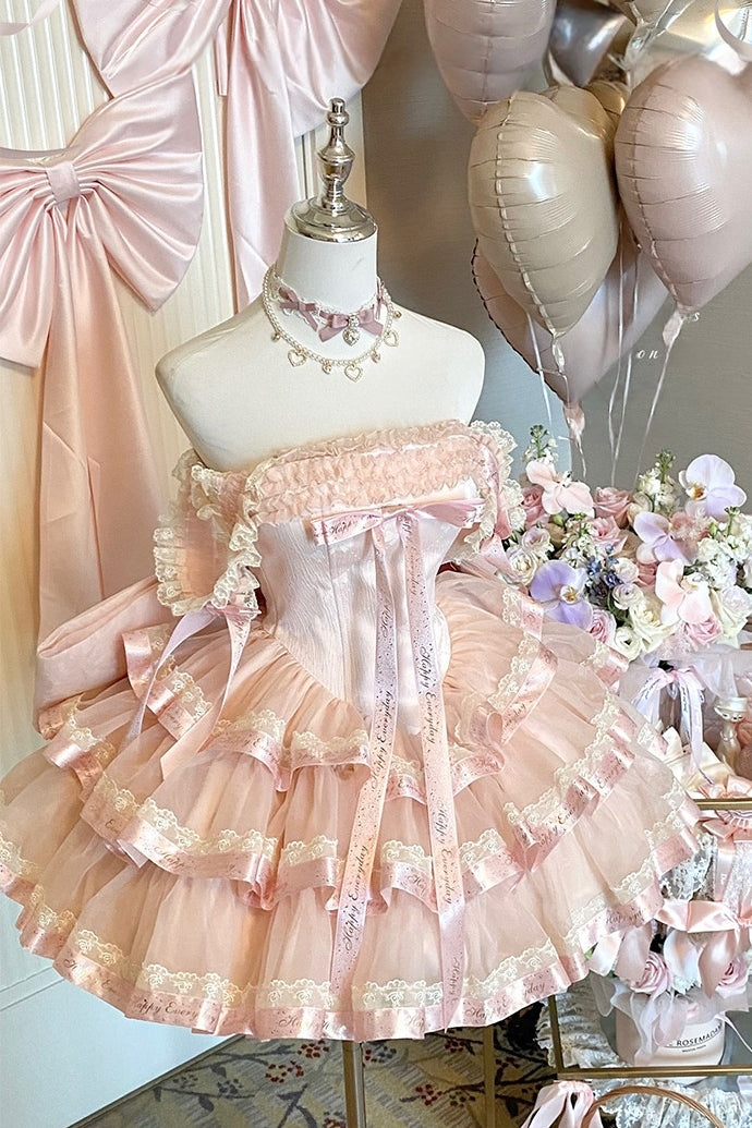 Вечернее платье «Принцесса с лентами» (нежно-розовое и чёрное)